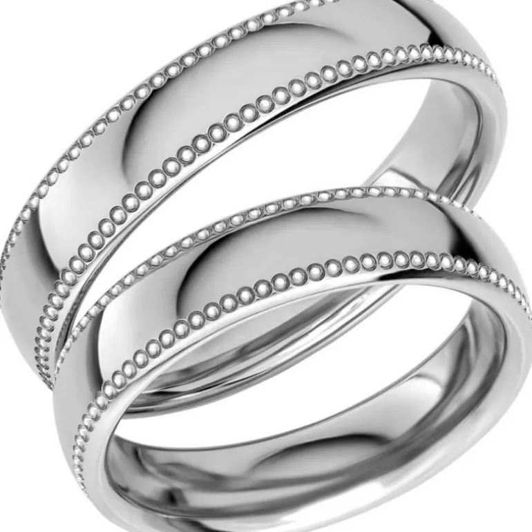 Reflection 03, förlovningsring och vigselring med kulmönster, mönstrad guldring i vitguld 18 karat tillverkad av Schalins ringar. Ny modell med mönster som kulor som finns i flera olika bredder.