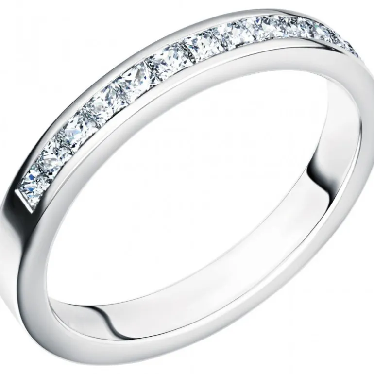 Snygg alliansring med fyrkantigt slipade diamanter, så kallad princesslipning. Ringen passar att kombinera med alla ringar ur 237-serien.