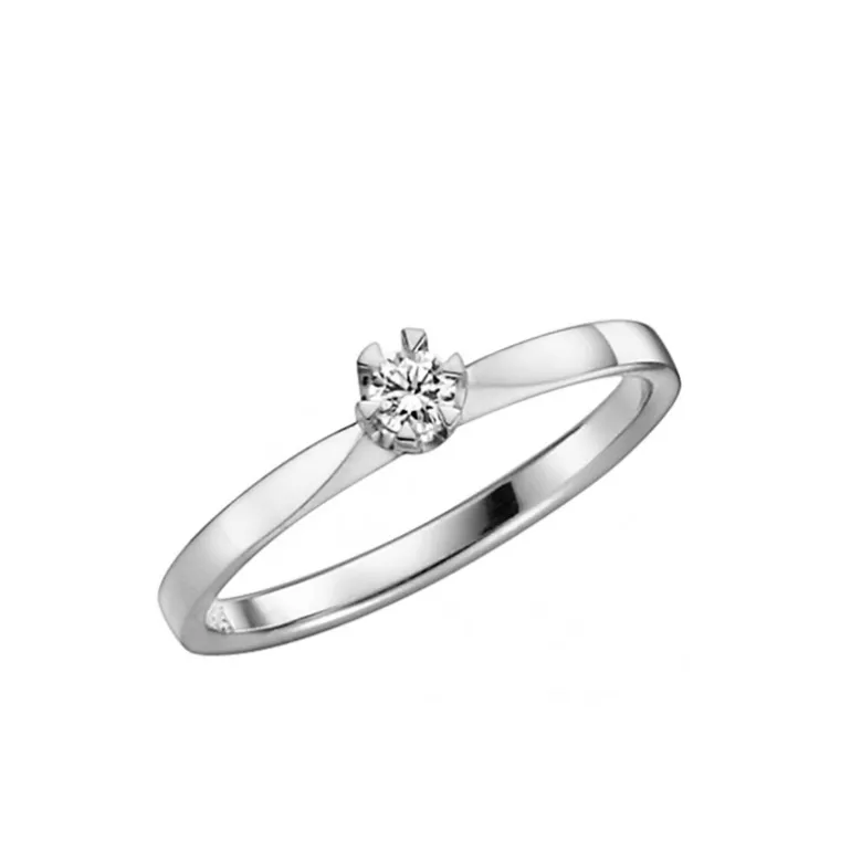 Donau förlovningsring eller vigselring, solitär diamantring med en briljant. Vitguldsring 14 karat med diamant 0,10 ct i klassisk prinsessmodell. Gravyr ingår. 5-7 dagars leveranstid.