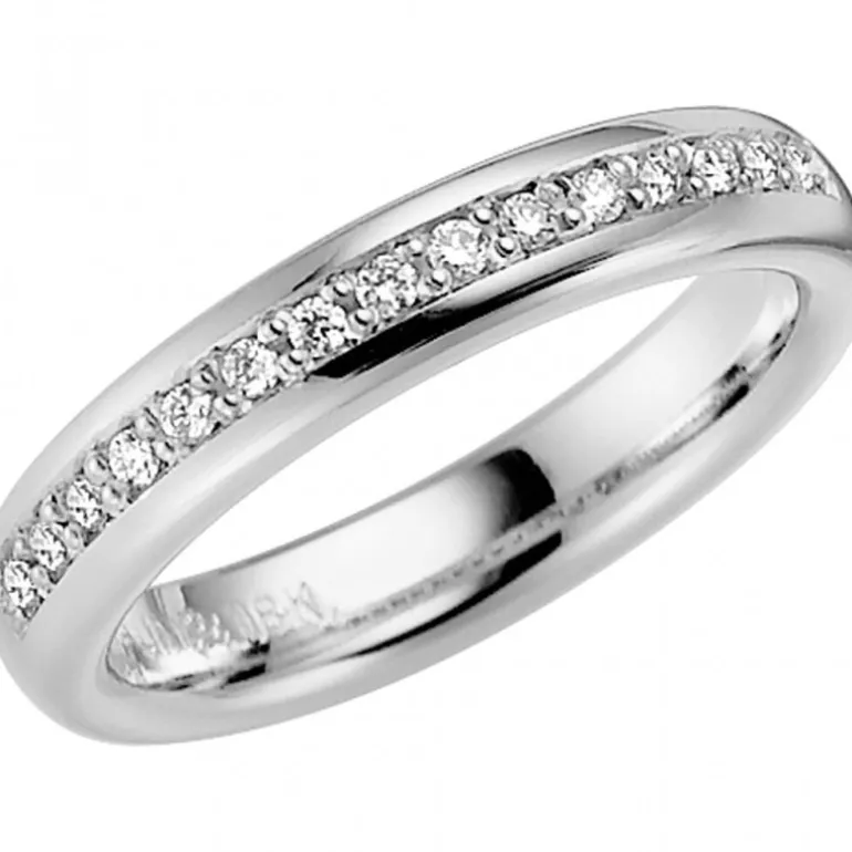 Alliansring, ring med flera diamanter från Schalins ringar. Fortuna är en snygg och stilren vigselring eller förlovningsring. Passar bra att kombinera med slät ring art nr 220-4.