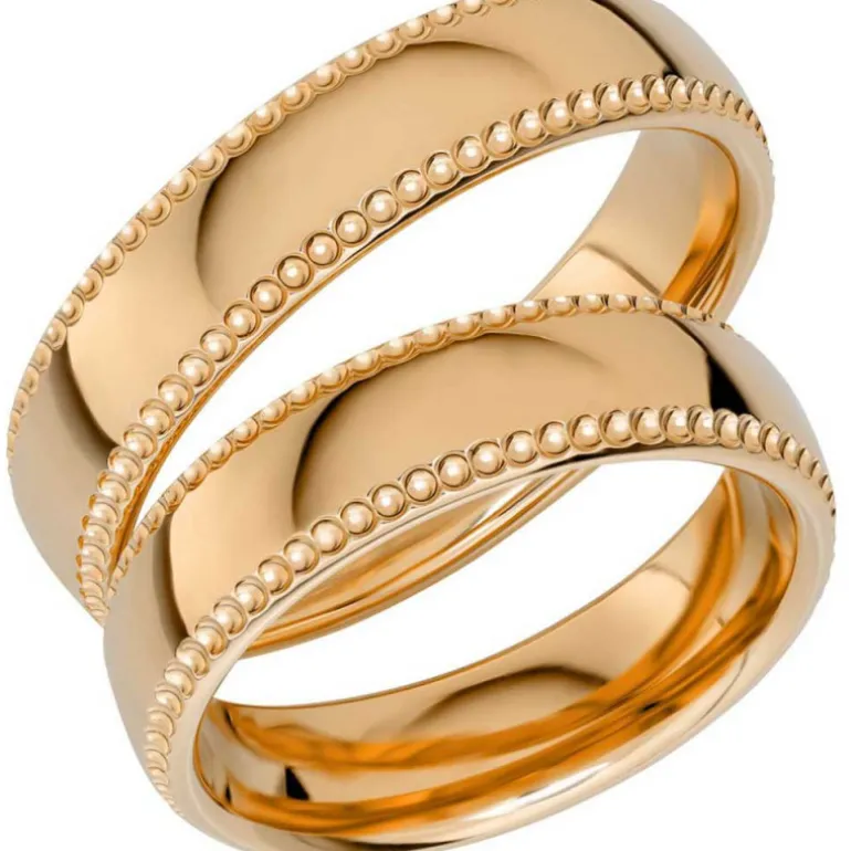 Förlovningsring och vigselring med kulmönster, mönstrad guldring i rödguld 14 karat tillverkad av Schalins ringar. Ny modell med mönster som kulor som finns i flera olika bredder.