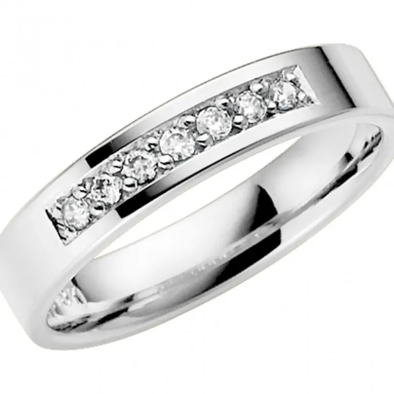 Vitguldsring 14 karat med diamanter 7 x 0,02 ct, Virgo från Schalins ringar. Gravyr ingår. 5-7 dagars leveranstid.