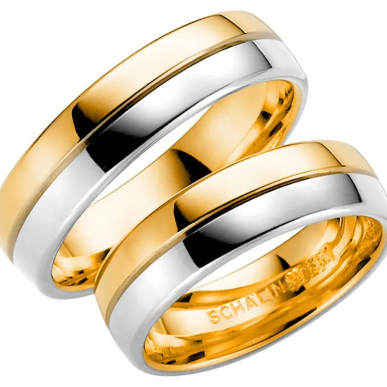 Tvåfärgad guldring 18 karat, bredd 6,0mm, höjd 1,8mm. Gravyr ingår.