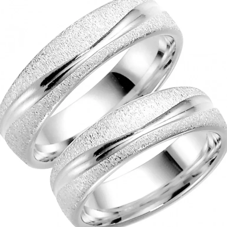 Ring med vågmönster och matterad yta från Schalins ringar. Tänk på att när man får en repa på en matterad yta blir den blank, så matteringen kommer med tiden att nötas bort.
