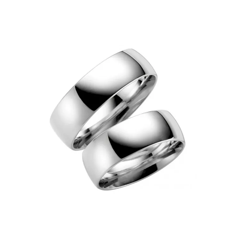 En slät klassisk förlovningsring eller vigselring med lätt kupning. även kupad invändigt för att sitta skönt på fingret.