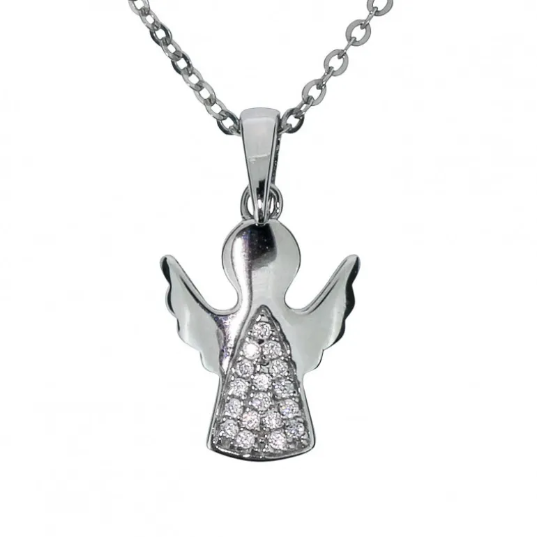 Halsband med söt liten ängel i äkta silver och glitterstenar, kedja ingår.