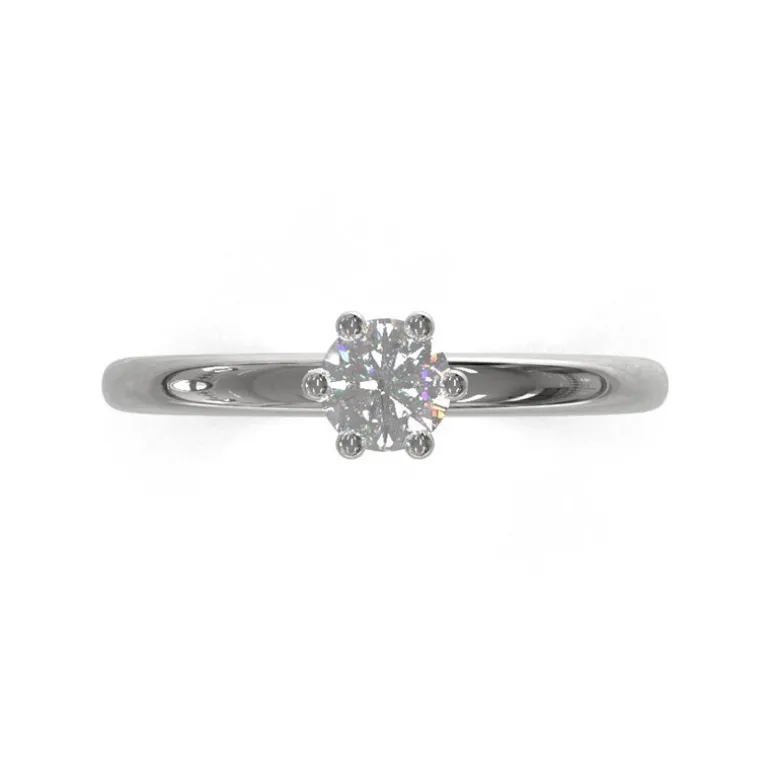 Snygg diamantring med enstensfattning med sex klor och mjukt rundad ring. Kombinera gärna med slät ring Amungen.