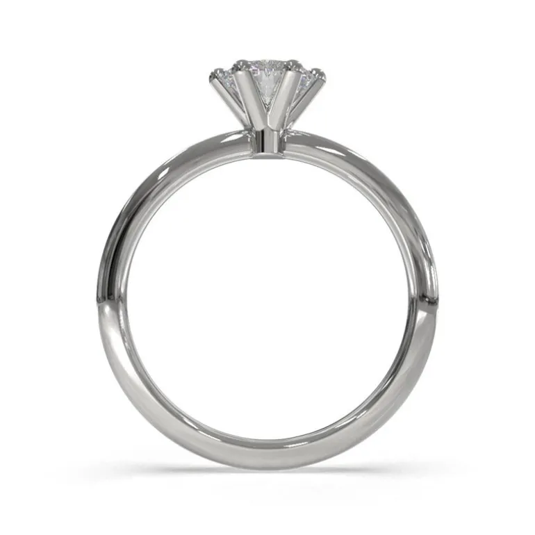 Snygg diamantring med enstensfattning med sex klor och mjukt rundad ring. Kombinera gärna med slät ring modell Amungen.