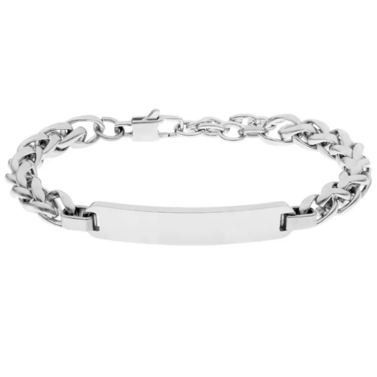 ID-armband Alvin, flätad rund kedja med bricka i rostfritt stål.