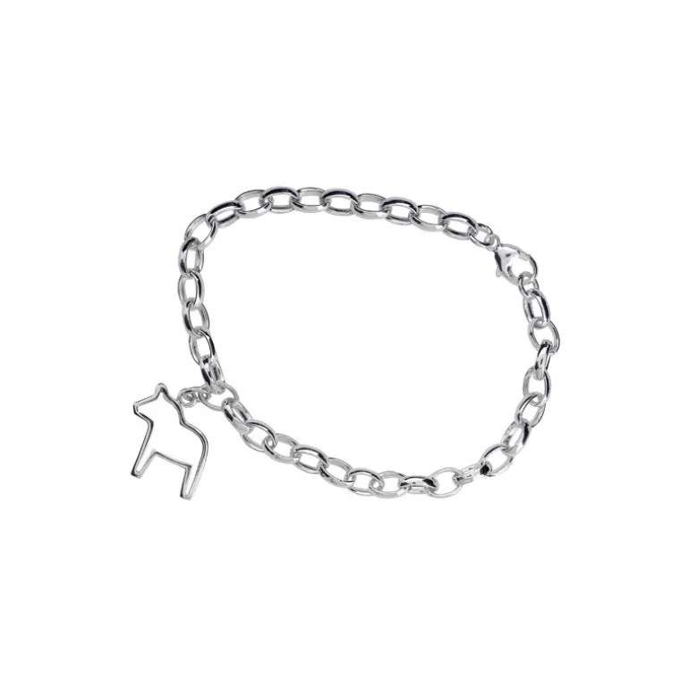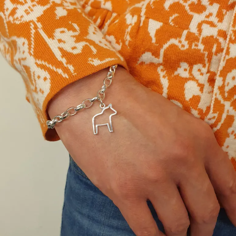 Armband i äkta silver med en berlock i form av en dalahäst i kontur.