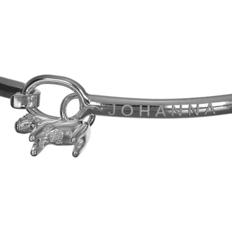 Armring i äkta silver med berlock dalahäst med kurbitsmönster. Personlig gravyr ingår på utsidan.