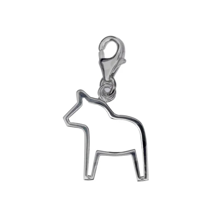 Berlock med dalahäst i kontur och karbinhake, äkta silver.