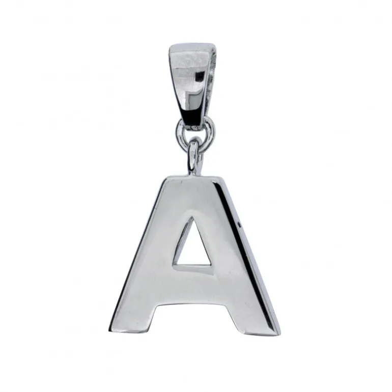 Smycke med bokstav A i äkta silver 925, höjd inklusive ögla 23 mm.