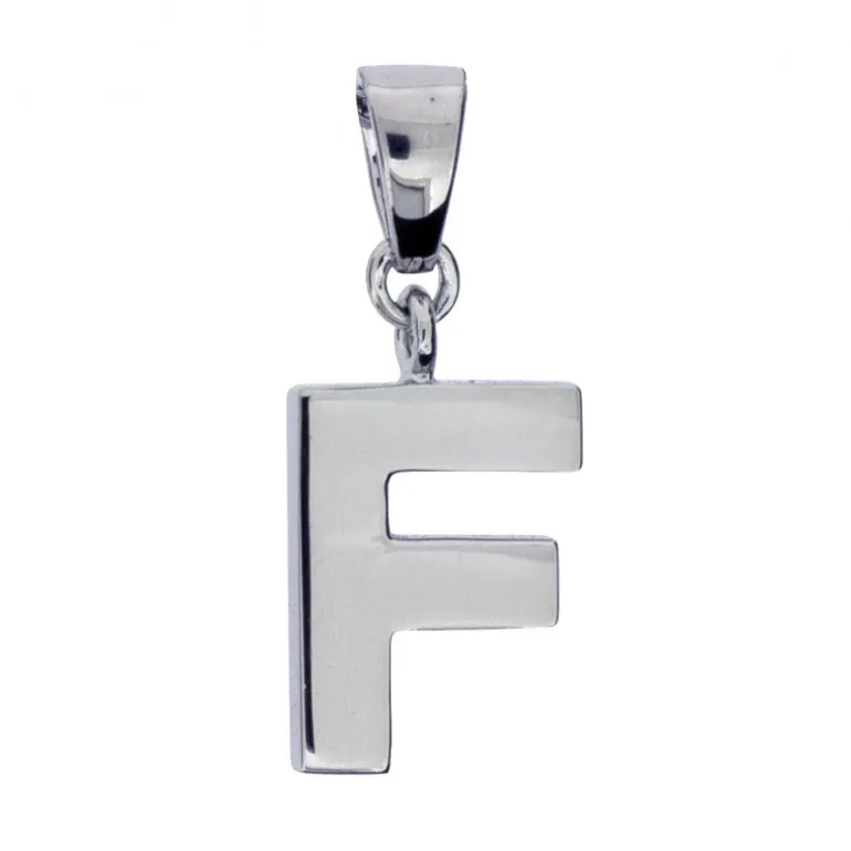Smycke med bokstav F i äkta silver 925, höjd inklusive ögla 23 mm.