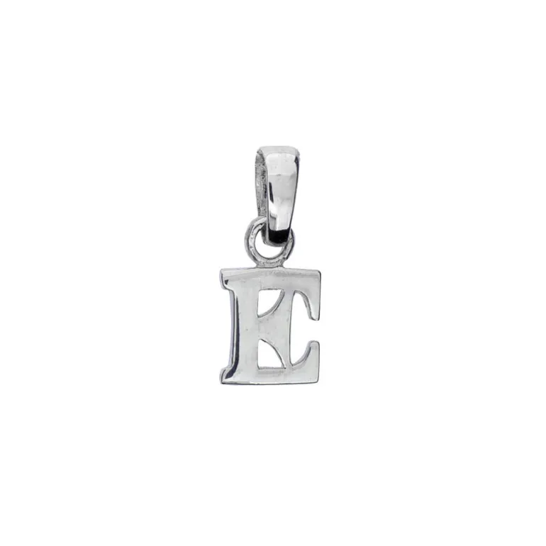 Bokstavshänge, berlock och smycke med bokstav E i äkta silver 925. Höjd inklusive ögla 16mm.