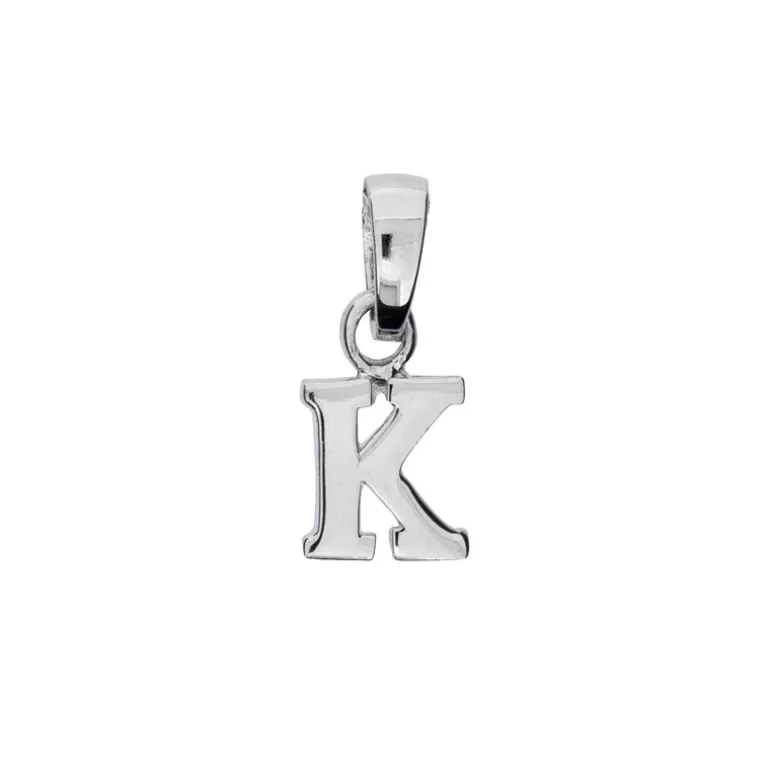Bokstavshänge, berlock och smycke med bokstav K i äkta silver 925. Höjd inklusive ögla 16mm.