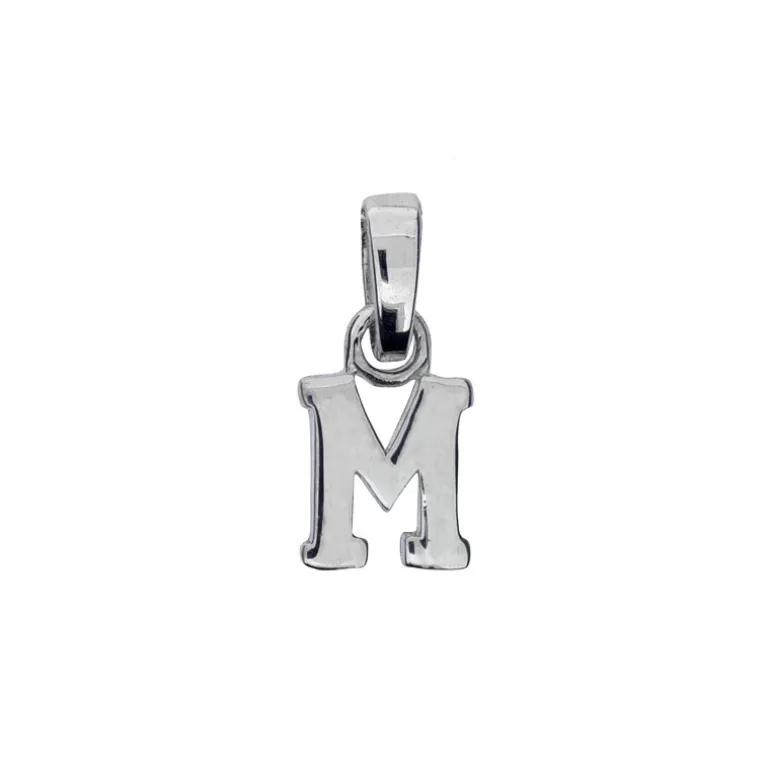 Bokstavshänge, berlock och smycke med bokstav M i äkta silver 925. Höjd inklusive ögla 16mm.