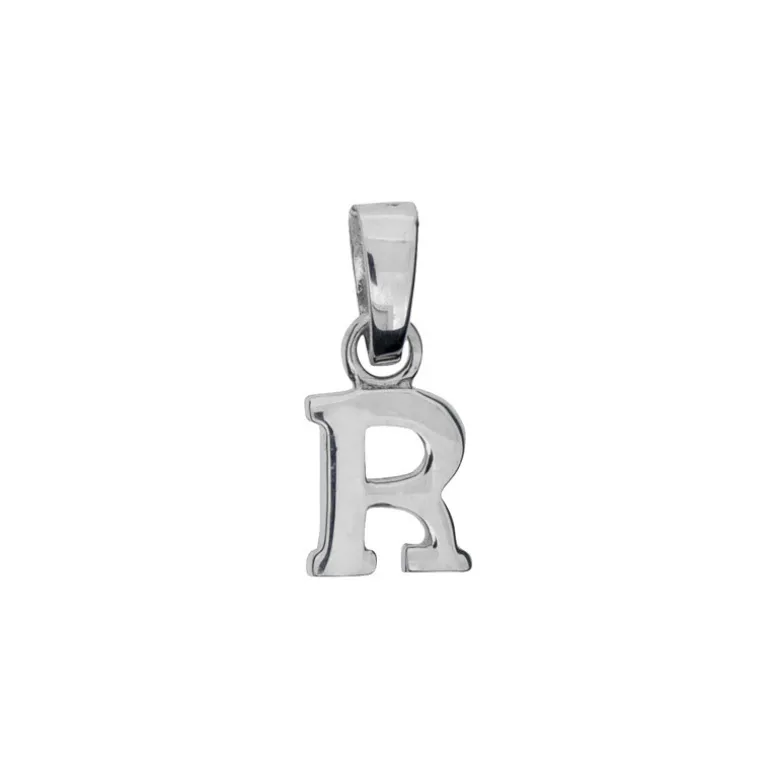 Bokstavshänge, berlock och smycke med bokstav R i äkta silver 925. Höjd inklusive ögla 16mm.