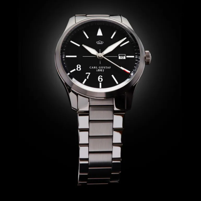 Klocka Carl Gustaf m1867 Cole Black, klocka med svart urtavla och snygg länk och boett i rostfritt stål.