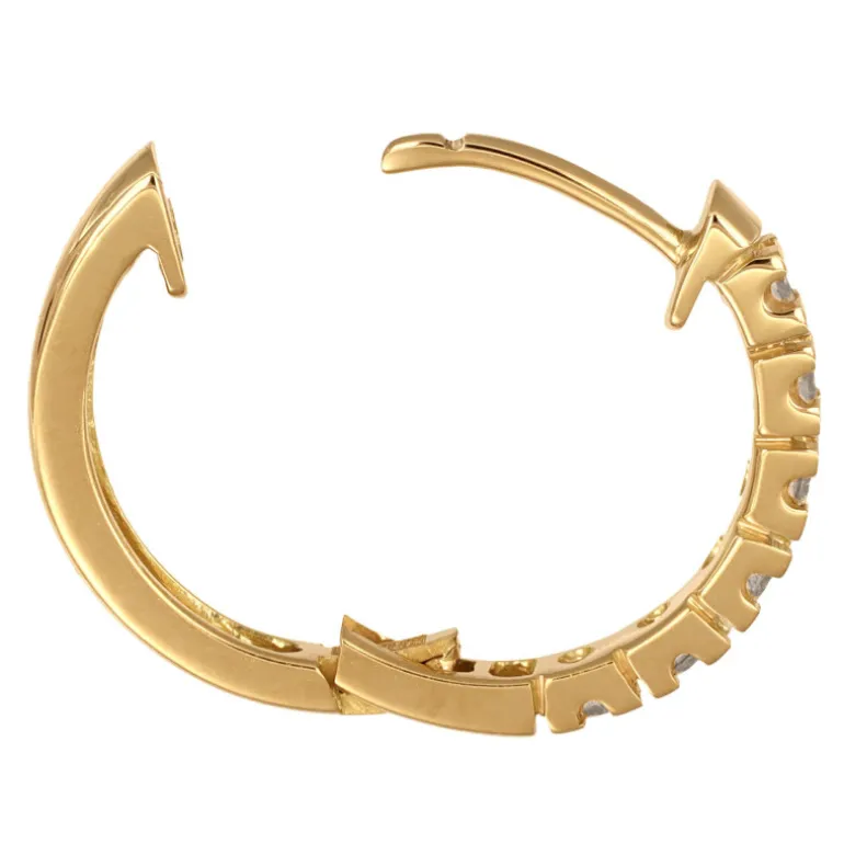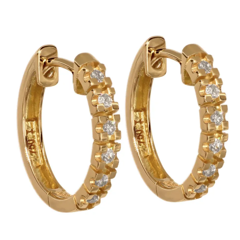 Creoler, hoops örringar huggies i äkta guld 18 karat med diamanter. Sex diamanter på varje ring, totalt 0,12 carat, kvalité W/SI. Ytterdiameter 15 mm, bredd 2,2 mm. Diamantörhängen ringar i vanligt guld.