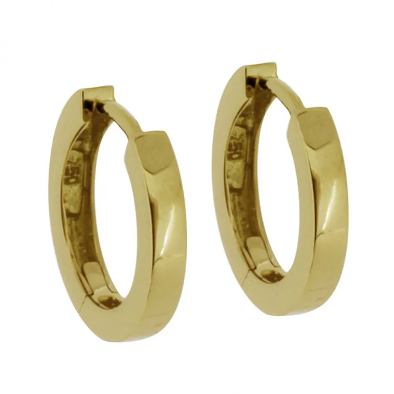 Creoler, örringar i 18 karat guld i i stilren rak modell. Diameter 15 mm.