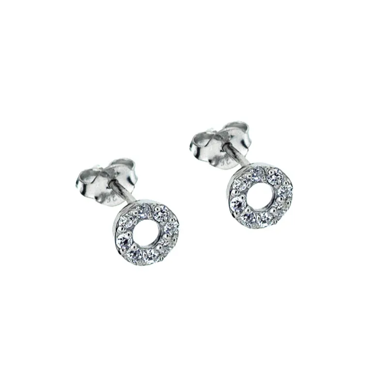 Fasta silverörhängen med glittrande små stenar på cirklar.