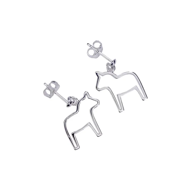 örhängen i äkta silver 925 med hängande dalahästar i kontur.