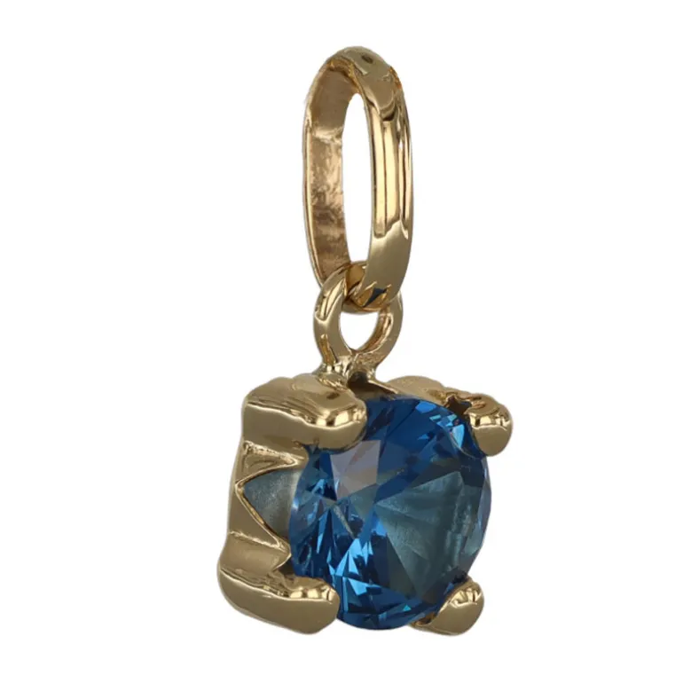 Månadssten smycke för månad december äkta guld 18 karat. Storlek på stenen 5 mm i diameter, höjd på smycket inklusive ögla 11 mm. Färgad syntetisk sten liknande turkos.