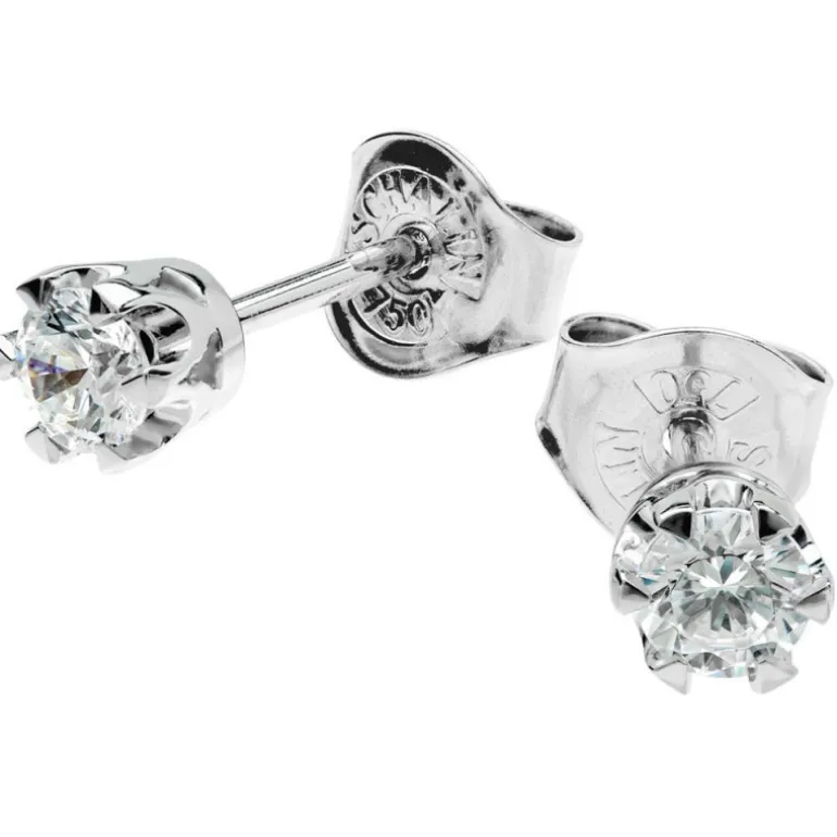 Örhängen med diamanter, briljanter, infattade i vitt guld 18 karat. Klassisk fattning med sex klor som ser ut som en princesskrona.