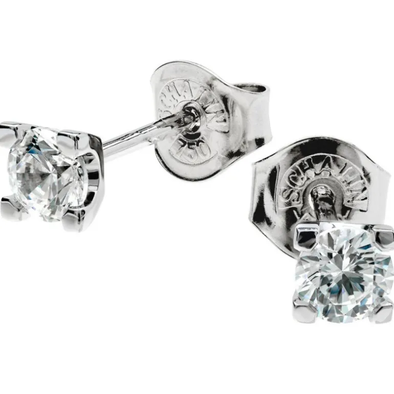 Örhängen i vitguld med diamanter infattade i fyra klor, briljanter i storlek 2 x 0,20 carat.