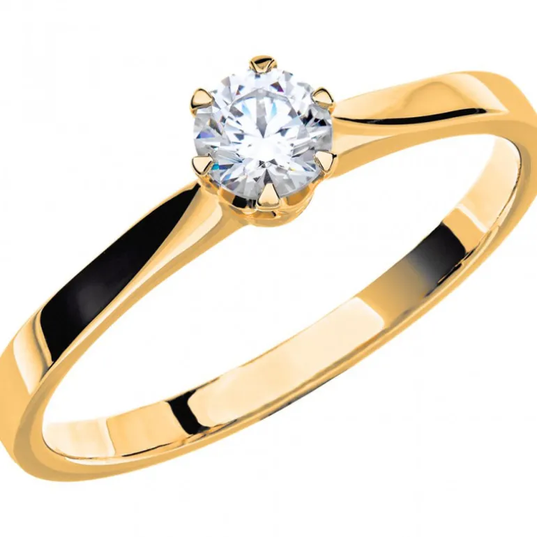 Donau förlovningsring eller vigselring, solitär diamantring med en briljant. Guldring 18 karat med diamant 0,30 ct från Schalins ringar.