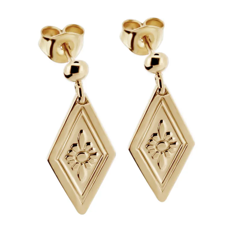 Hängande örhängen med dräktkläppen i guldförgyllt äkta silver. Längd 23 mm. Kläppet med blomma som dekoration sitter nertill på många dräktbroscher.