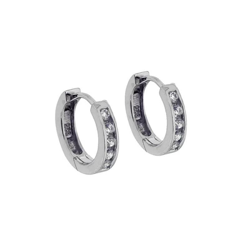 Creoler, örringar i äkta silver 925 med klickmekanik och vita gnistrande stenar.