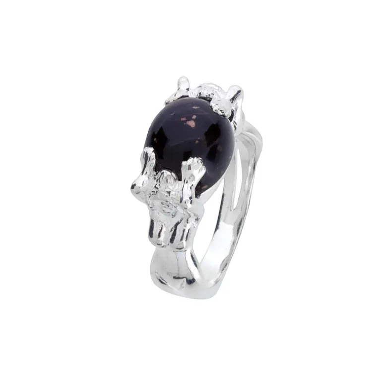 Ring i äkta silver med kvinnokroppar och en sten av porfyr. Ringen kallas för stora Emma och ingår i kollektionen med Zornsmycken.