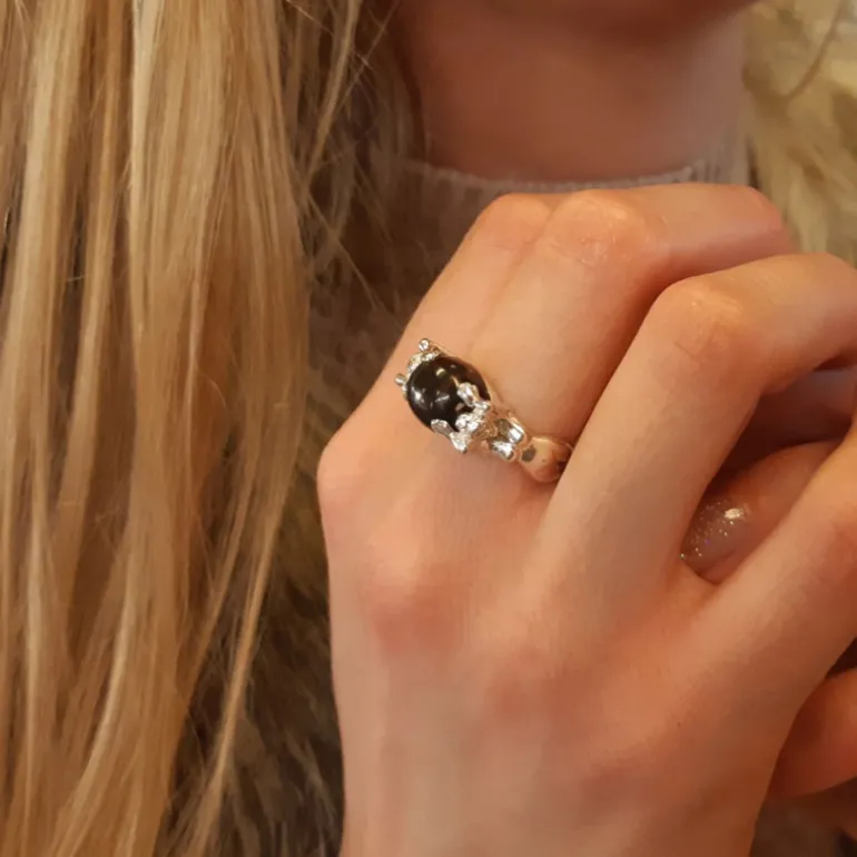 Emmaring, ring äkta silver med två kvinnokroppar och stor porfyr i melerad brun färg, från Zorn Jewellery.