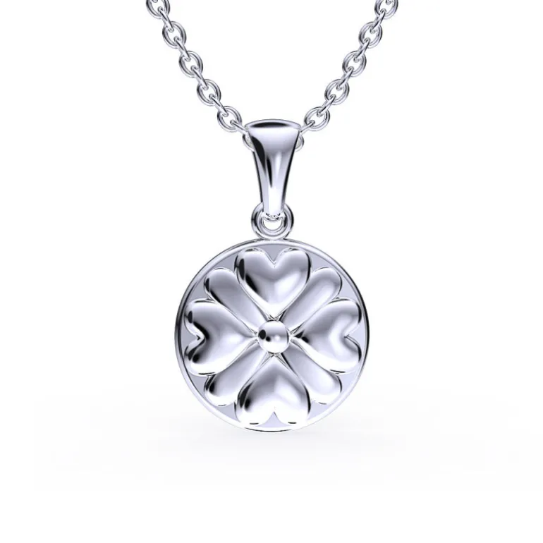 Halsband Folklore mini, rund berlock smycke med fyra hjärtan som bildar en blomma. En detalj och dekoration som återfinns på många dräktväskor till folkdräkter.