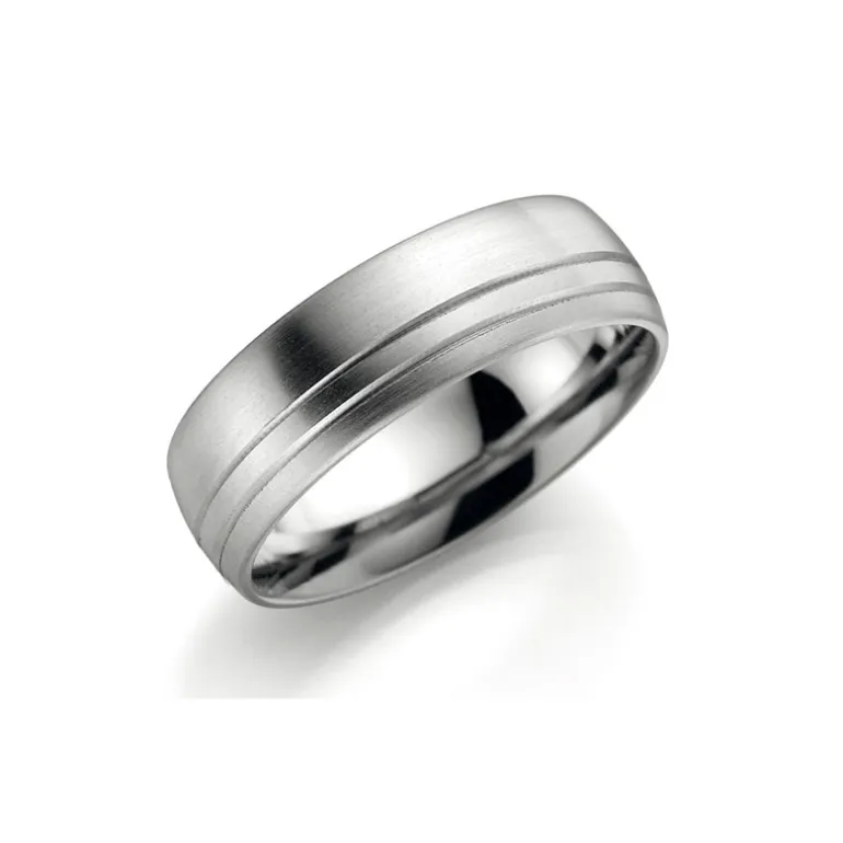 Titanring, ring i titan med två spår som dekoration. Bredd 7,0mm. Höjd 1,9mm.
