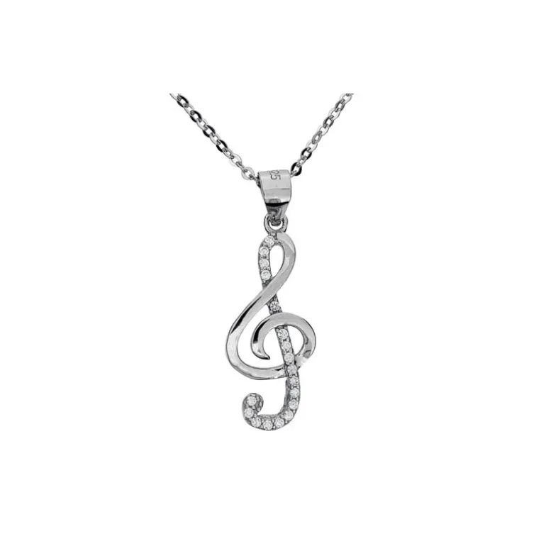 Halsband med G-klav i äkta silver 925, kedja ingår.