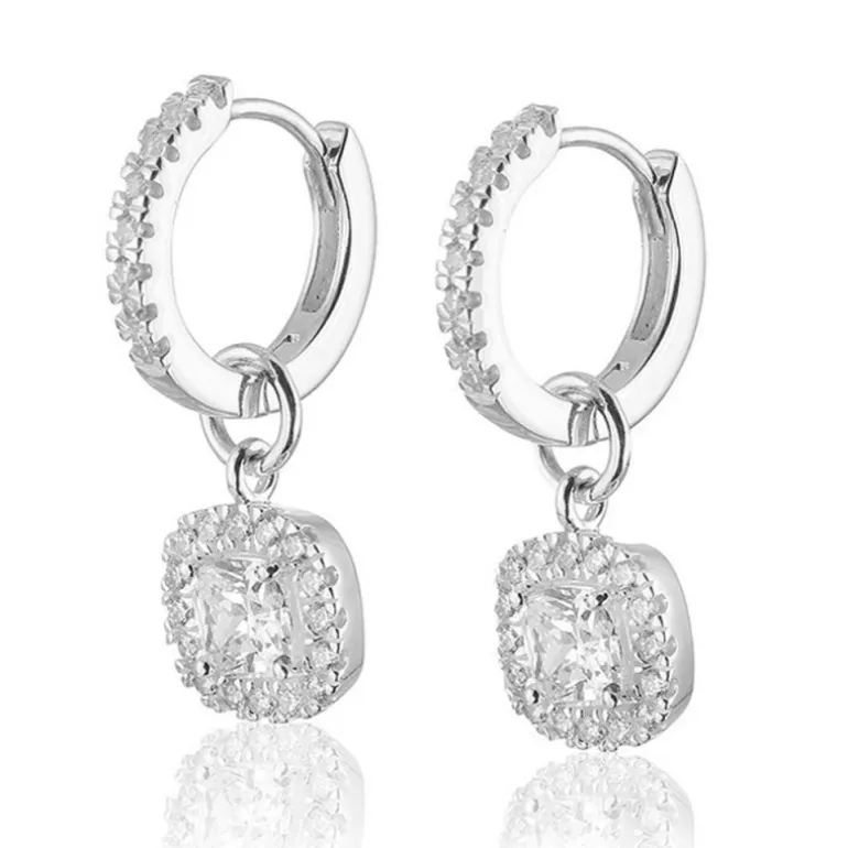 Glamorous, örhängen creoler från Carolina Gynning. Material äkta silver och vita gnistrande stenar, cubik zirkoner.