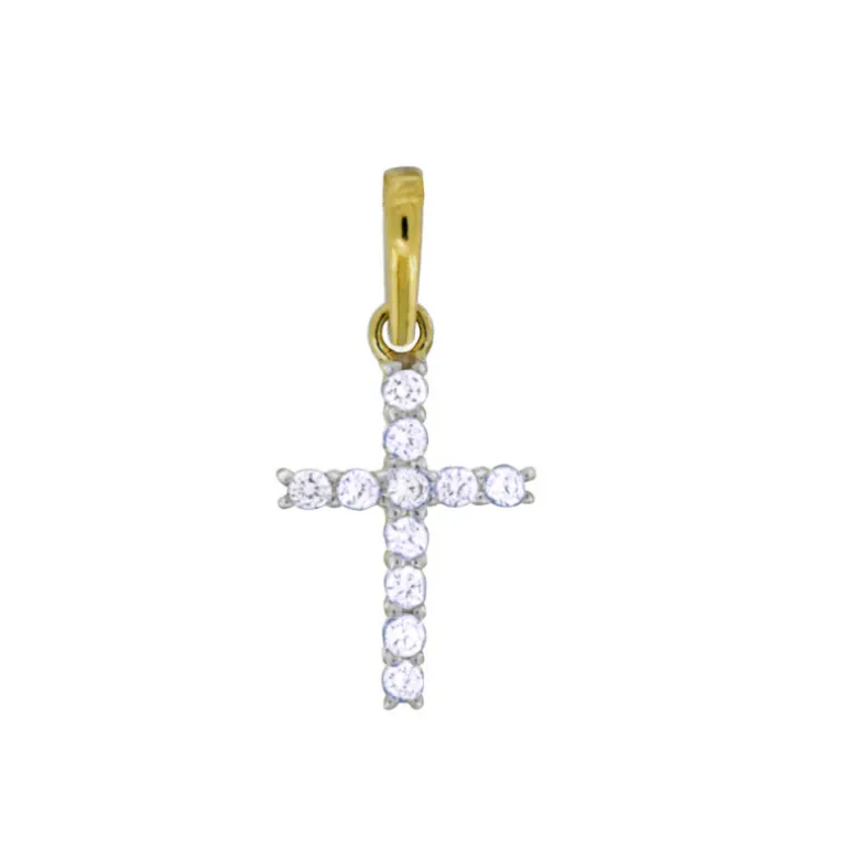 Smycke med kors, guldkors i äkta guld 18 karat med glittrande syntetiska cubik zirkoner.