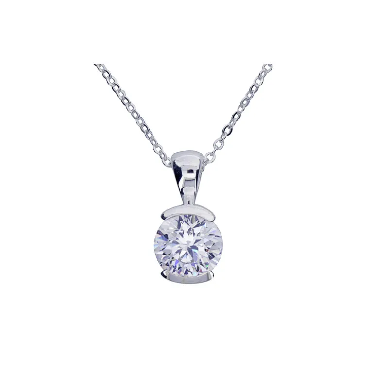 Halsband i äkta silver med vit sten, cubik zirkon, inklusive kedja.