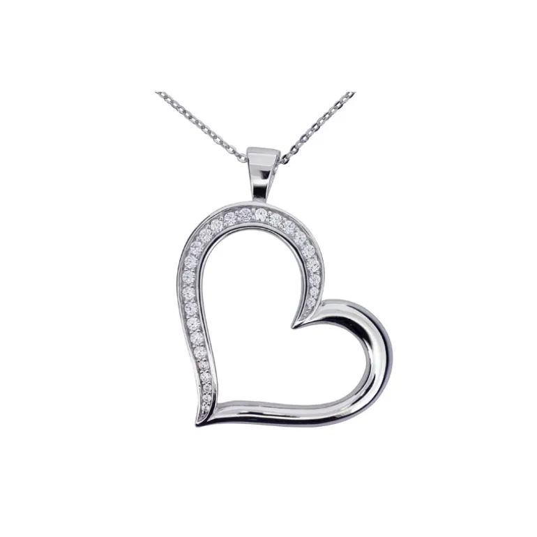 Halsband med stort hjärta i äkta silver, silverhjärta med gnistrande stenar och kedja ingår.