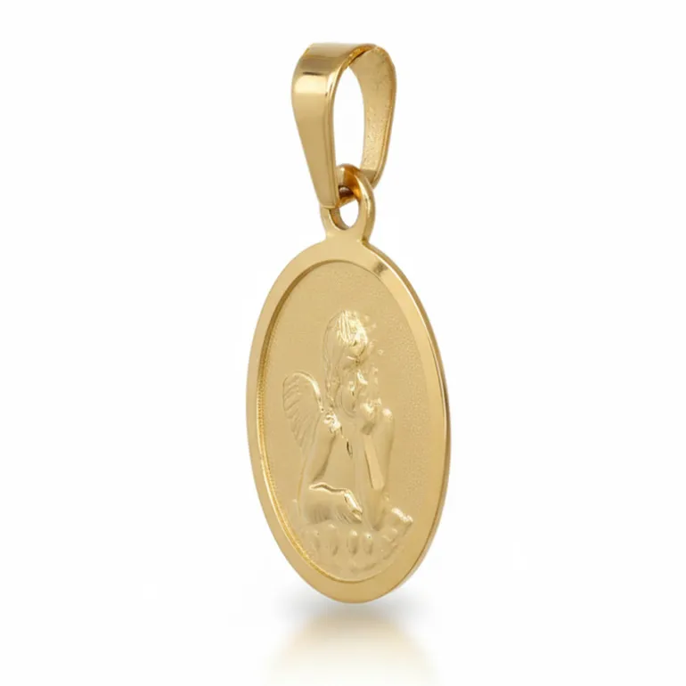 Rund guldberlock med ängel 18 karat guld, fint som dopsmycke.