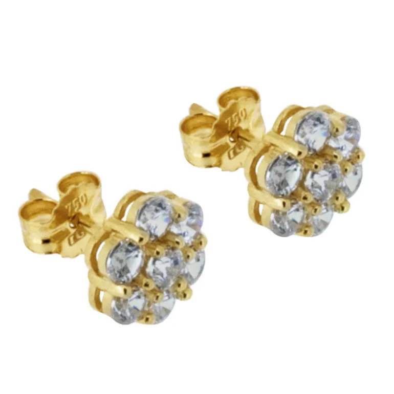 Guldörhängen 18 karat med glittriga blommor, stenarna är vita cubik zirkoner.