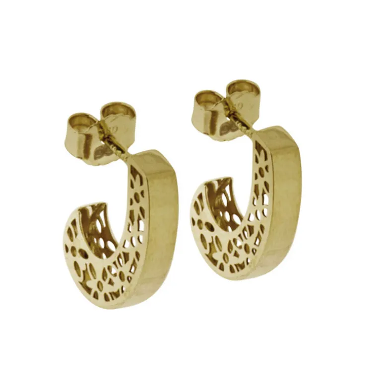 Örhängen, halvcreoler på stift i 18 karat guld med mönster på sidorna.