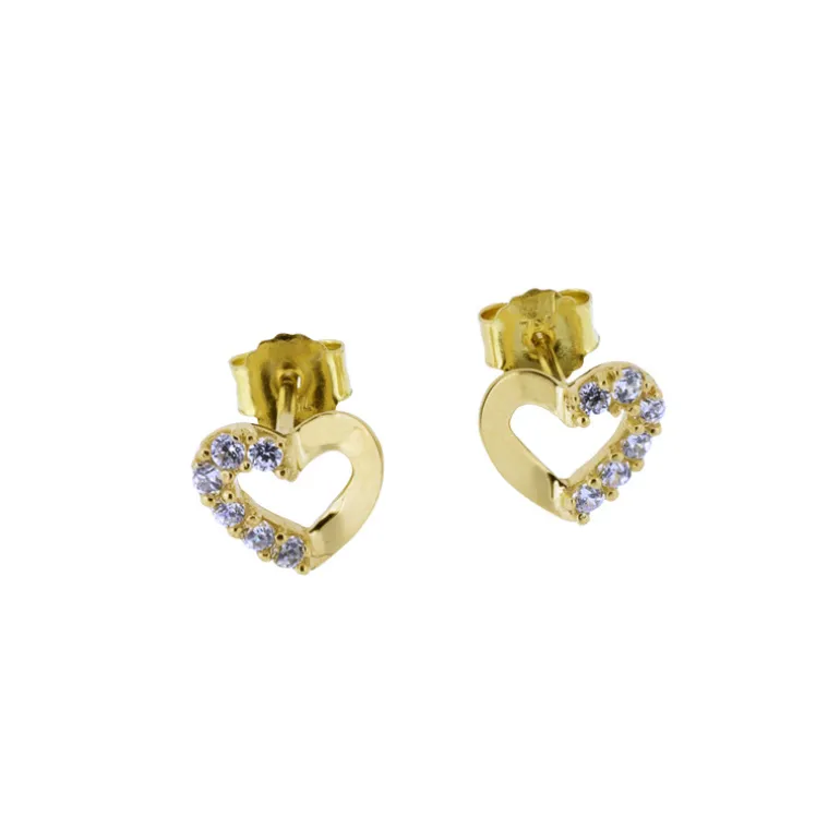 Guldörhängen 18K med fasta hjärtan och stenar på ena sidan.