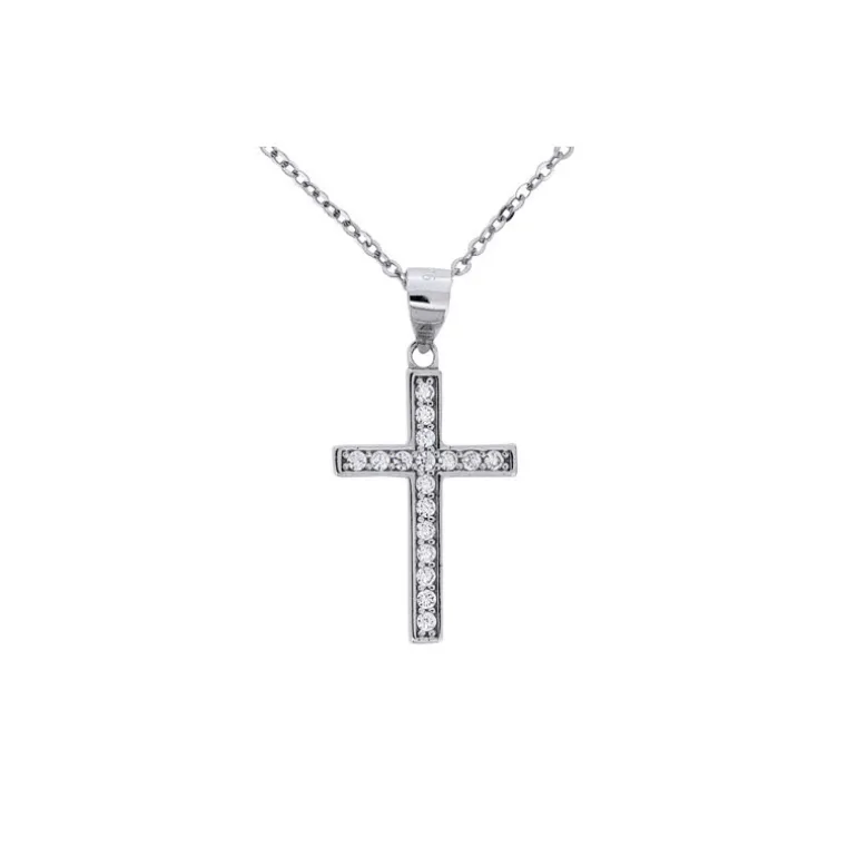 Halsband med glittrigt kors i äkta silver 925.
