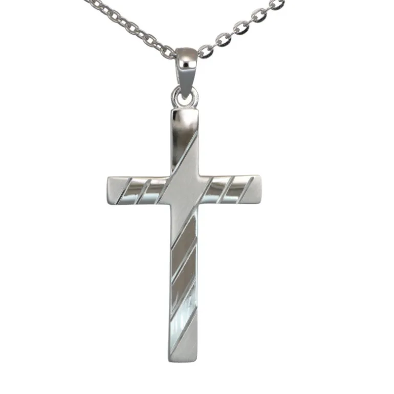 Halsband med lite större kors i äkta silver 925, snyggt mönster med matta och blanka ytor. Välj önskad längd på kedjan vid beställningen. Höjd på korset inklusive ögla 35 mm, bredd 17,6 mm.