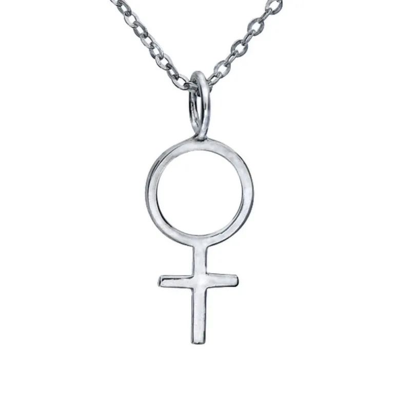 Halsband med kvinnosymbol, kvinnotecken i äkta silver. Kedja ingår. Symbolen för venus, kvinna och feministsmycke.