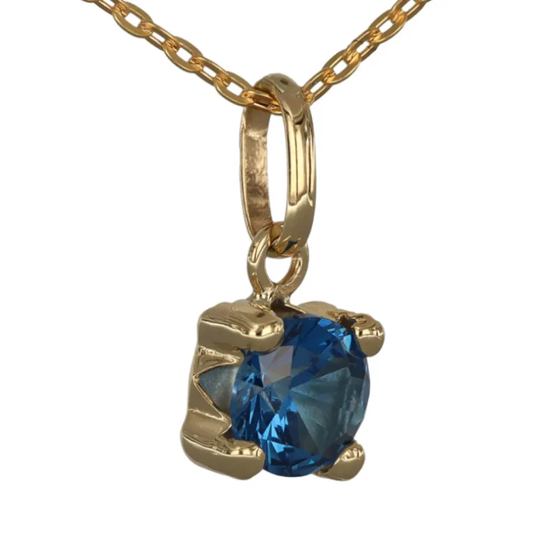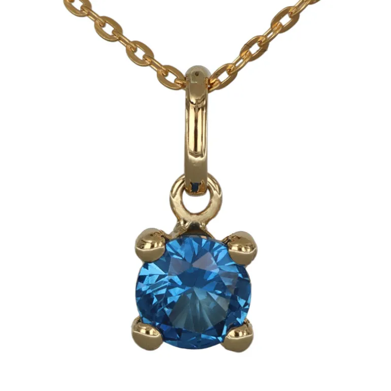 Halsband med månadssten smycke för månad december i äkta guld 18 karat. Storlek på stenen 5 mm i diameter, höjd på smycket inklusive ögla 11 mm. Färgad syntetisk sten liknande turkos. Kedja modell ankar, bredd 1,1 mm och längd 45 cm (artikel 5-50-0001-45).